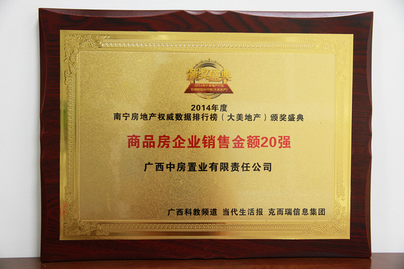 • 2014年度南寧房地產(chǎn)權(quán)威數(shù)據(jù)排行榜頒獎盛典商品房企業(yè)銷售金額20強