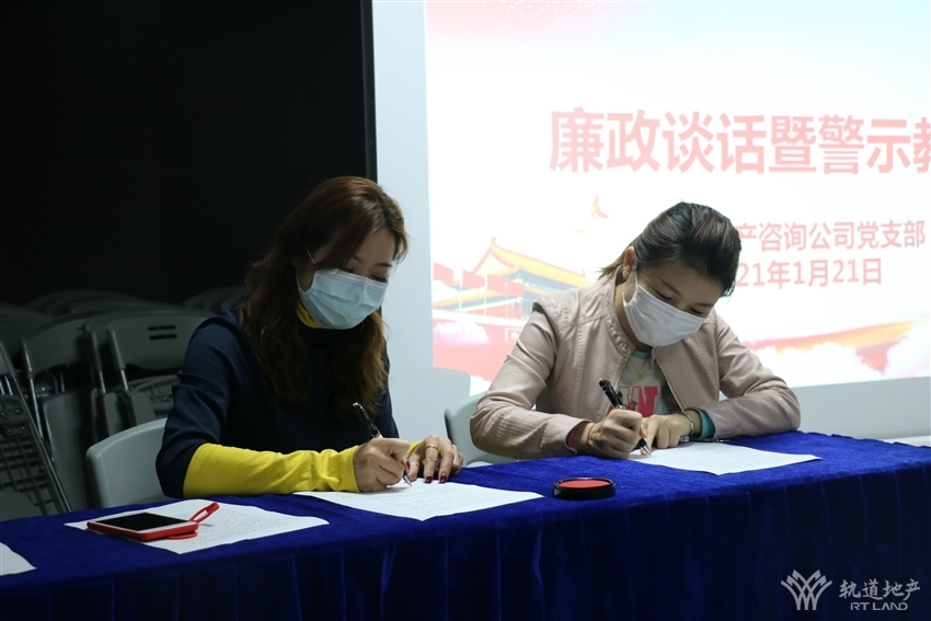 活動中,軌道地產咨詢公司黨支部書記、董事長劉燕組織與會人員學習了《關于兩起違反中央八項規(guī)定精神問題典型案例的通報》等相關文件,并集中觀看了警示教育片《縣委書記為何滑向深淵》。軌道地產咨詢公司各部門、各項目負責人還與黨支部書記劉燕簽訂了《黨風廉政建設承諾書》
